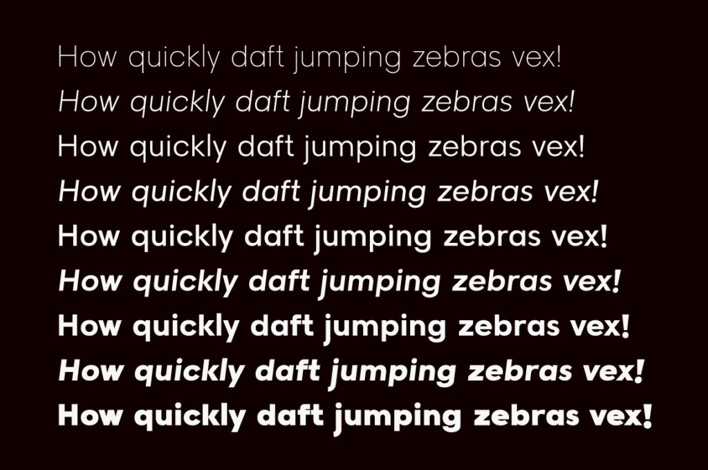 A universal favorite for branding and corporate identity. Its neutral voice, clean structure, and exceptional legibility make it one of the most dependable sans-serif families in design history.