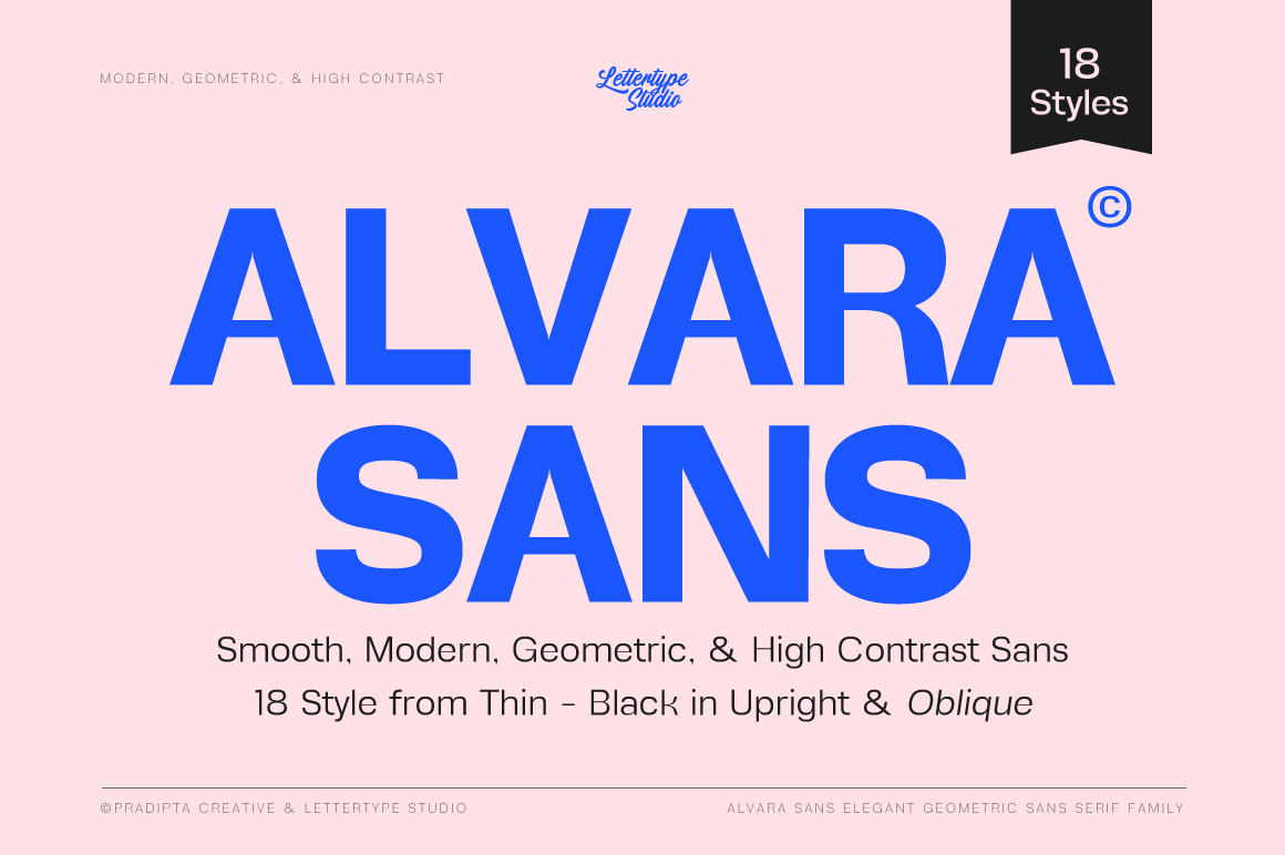 Alvara Sans is a sophisticated sans-serif font family that blends smooth geometry with a modern minimalist touch. With 18 carefully crafted styles ranging from ultra-thin to bold black, and matching obliques for each weight, Alvara offers perfect balance between form and function. Its soft curves, clean structure, and neutral tone with high contrast make it a powerful choice for branding, editorial design, packaging, digital interfaces, and corporate identity. Every detail is carefully designed to deliver high readability, versatility, and timeless professionalism across all media.