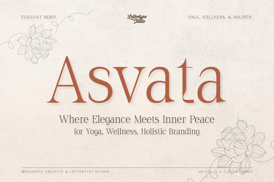 Asvata is a timeless serif font with organic curves, refined contrast, and a tranquil presence. Rooted in elegance and spiritual depth, Asvata is perfect for wellness branding, yoga studios, holistic product packaging, and mindful design. Its graceful letterforms evoke balance, clarity, and connection, offering a soft yet professional voice across editorial, logo, and digital projects.