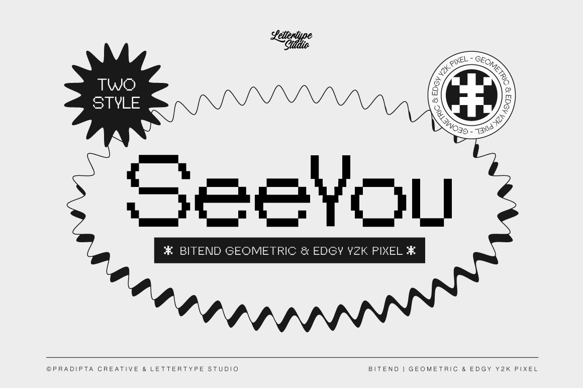 Bitend is a geometric pixel Y2K font that fuses 80s retro nostalgia with early 2000s futuristic style. Designed for bold, digital-forward projects, it’s ideal for gaming interfaces, posters, and branding that needs a sharp, tech-inspired edge.