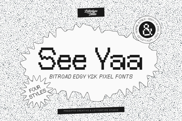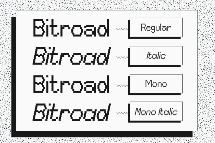With four styles — Normal, Italic, Monospaced, and Mono-Italic — Bitroad gives designers flexibility to mix vintage energy with modern layouts. Ideal for logos, pixel art, posters, and digital typography, it brings a playful yet professional retro flair to any creative project.