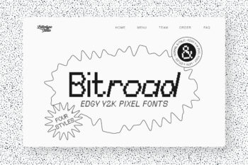 Bitroad is a pixel Y2K display font that fuses the digital aesthetics of the 1980s and 2000s. Designed for retro-tech and nostalgic projects, its crisp edges and monospaced balance make it perfect for games, interfaces, and futuristic branding.