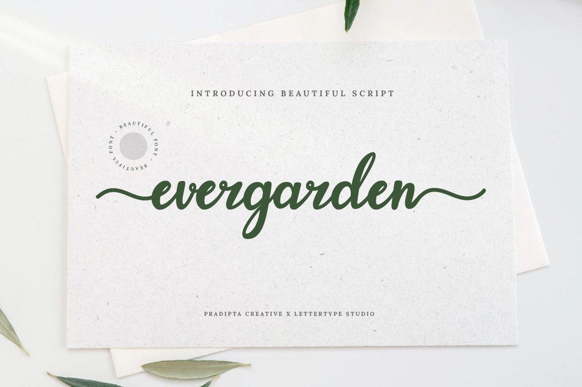 Perfect for wedding invitations, logos, social media posts, branding projects, product packaging, and other creative designs, Evergarden brings charm and sophistication to any project. Its graceful strokes and versatile features make your ideas bloom with life and creativity.