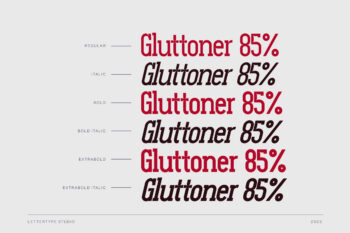 Perfect for branding, apparel, posters, and editorial design, Gluttoner Slab combines modern energy with a retro foundation. With multiple weights and styles, it’s built for designers who want versatility, personality, and impact in every project.