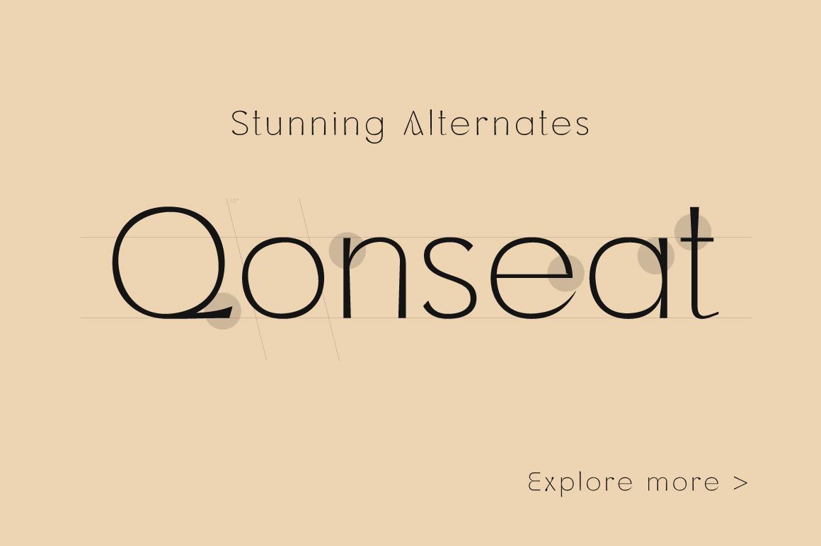 Qonseat is a geometric display sans serif font designed for bold, modern, and versatile use. Featuring over 50 alternate glyphs, it allows endless creative control for designers who want to create standout logos and unique branding identities.