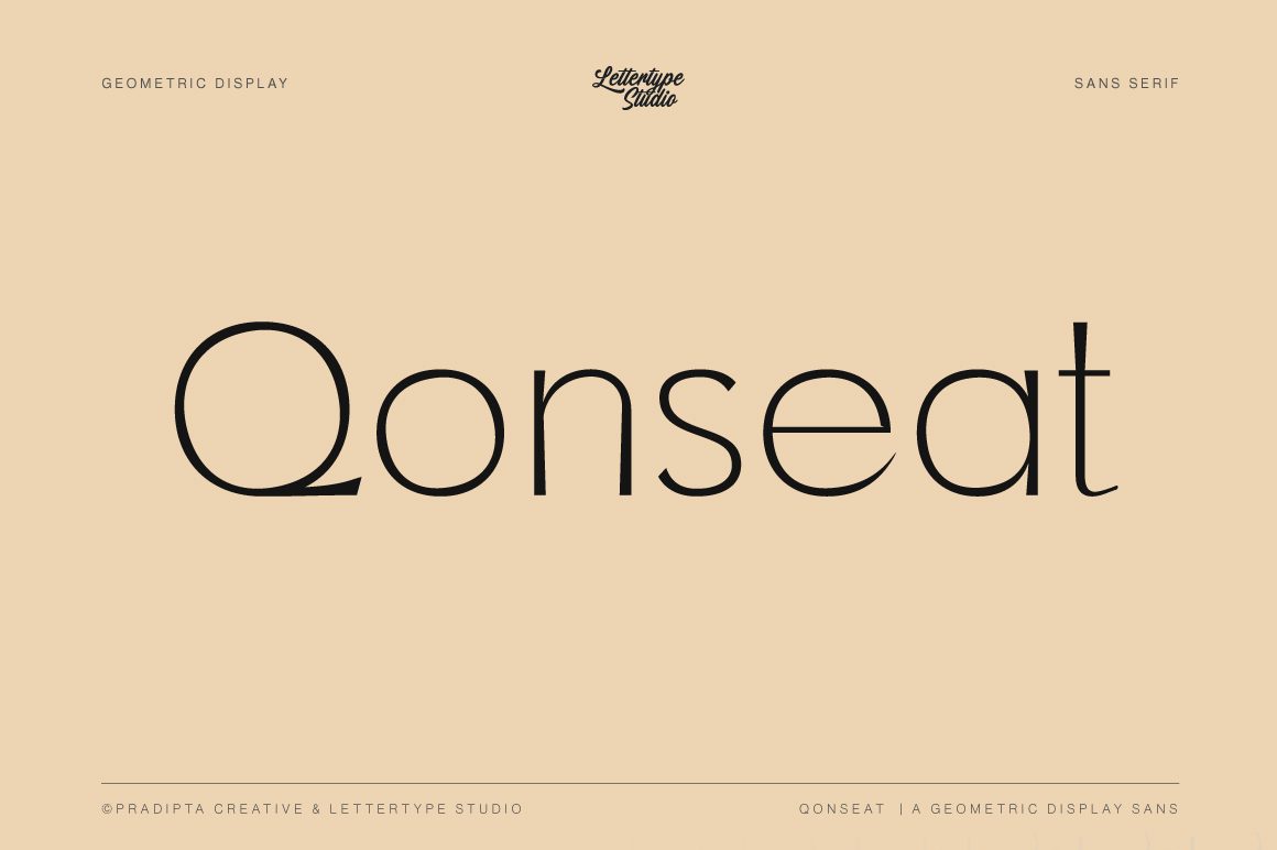 Perfect for packaging, posters, headlines, and editorial layouts, Qonseat combines precision with modern simplicity. Its clean geometry and balanced structure make it an ideal choice for both digital and print projects that demand a sleek, professional aesthetic.